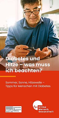 Für Menschen mit Diabetes ist es besonders wichtig, gesundheitliche Risiken im Blick zu haben. Das Faltblatt informiert darüber, wie der Körper auf Hitze reagiert, wieso hohe Temperaturen bei Diabetes besonders gefährlich sind und wie Sie sich gut schützen können.