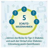 Maßnahmen zur Anpassung des Lebensstils sind besonders wirksam, um das individuelle Erkrankungsrisiko für Typ-2-Diabetes zu senken. Zu den Maßnahmen zählen: ausgewogen ernähren, ausreichend bewegen, Stress vermeiden und in Balance bleiben, nicht rauchen sowie keinen oder wenig Alkohol trinken. Auch bei einem bestehenden Typ-2-Diabetes kann dies dabei helfen, den Verlauf positiv zu beeinflussen und Folgeerkrankungen zu vermeiden.